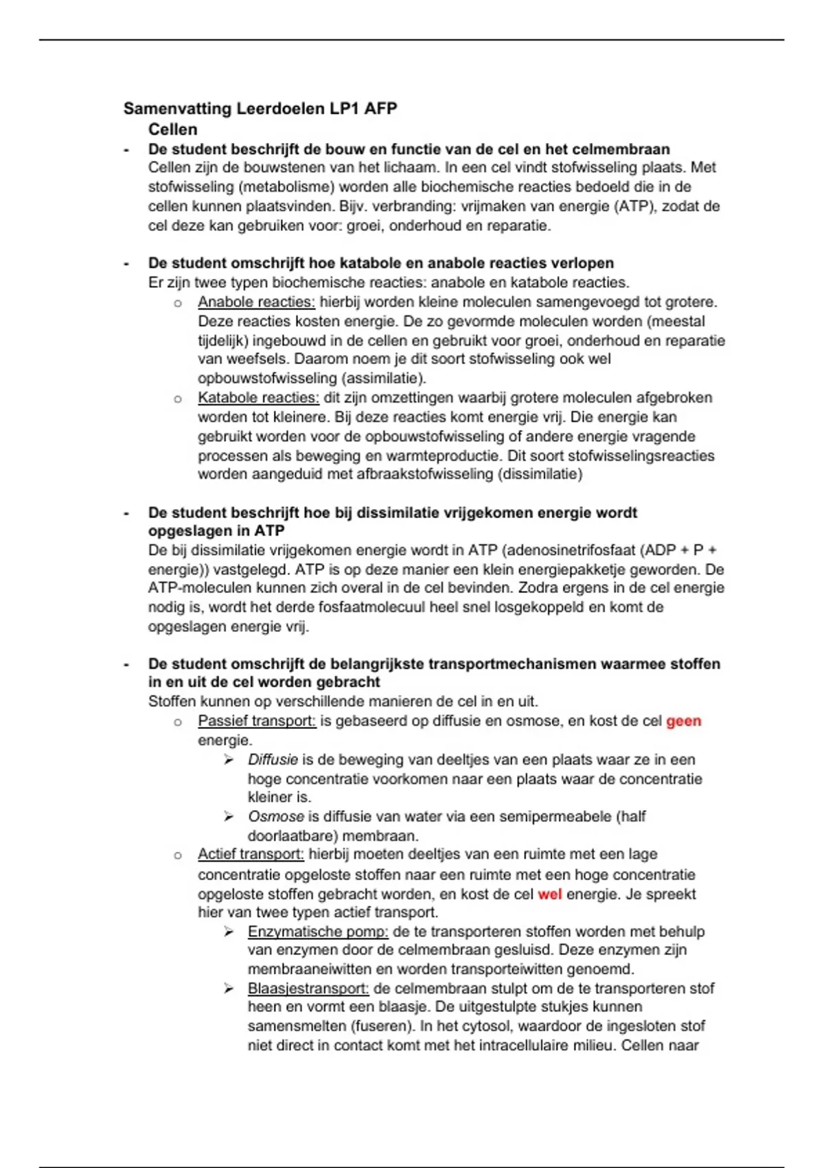 cellen kunnen plaatsvinden. Bijv. verbranding: vrijmaken van energie (ATP), zodat de