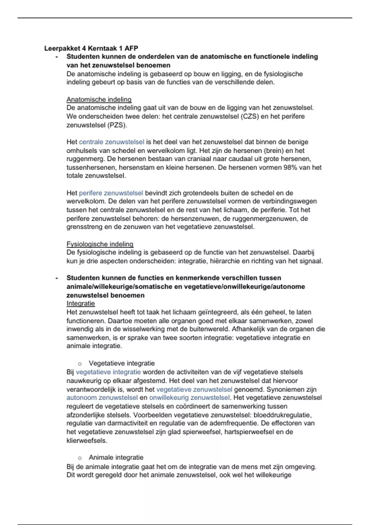 - Studenten kunnen de onderdelen van de anatomische en functionele indeling