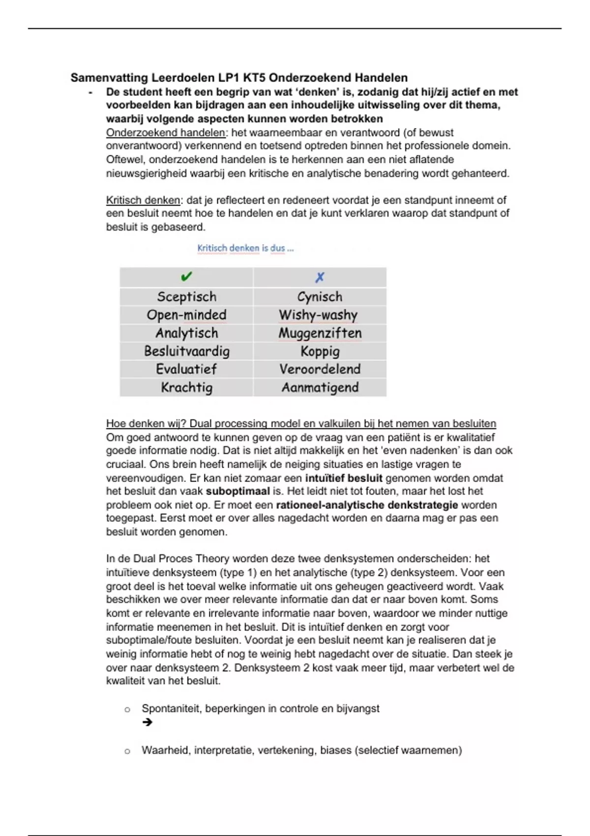- De student heeft een begrip van wat ‘denken’ is, zodanig dat hij/zij actief en met