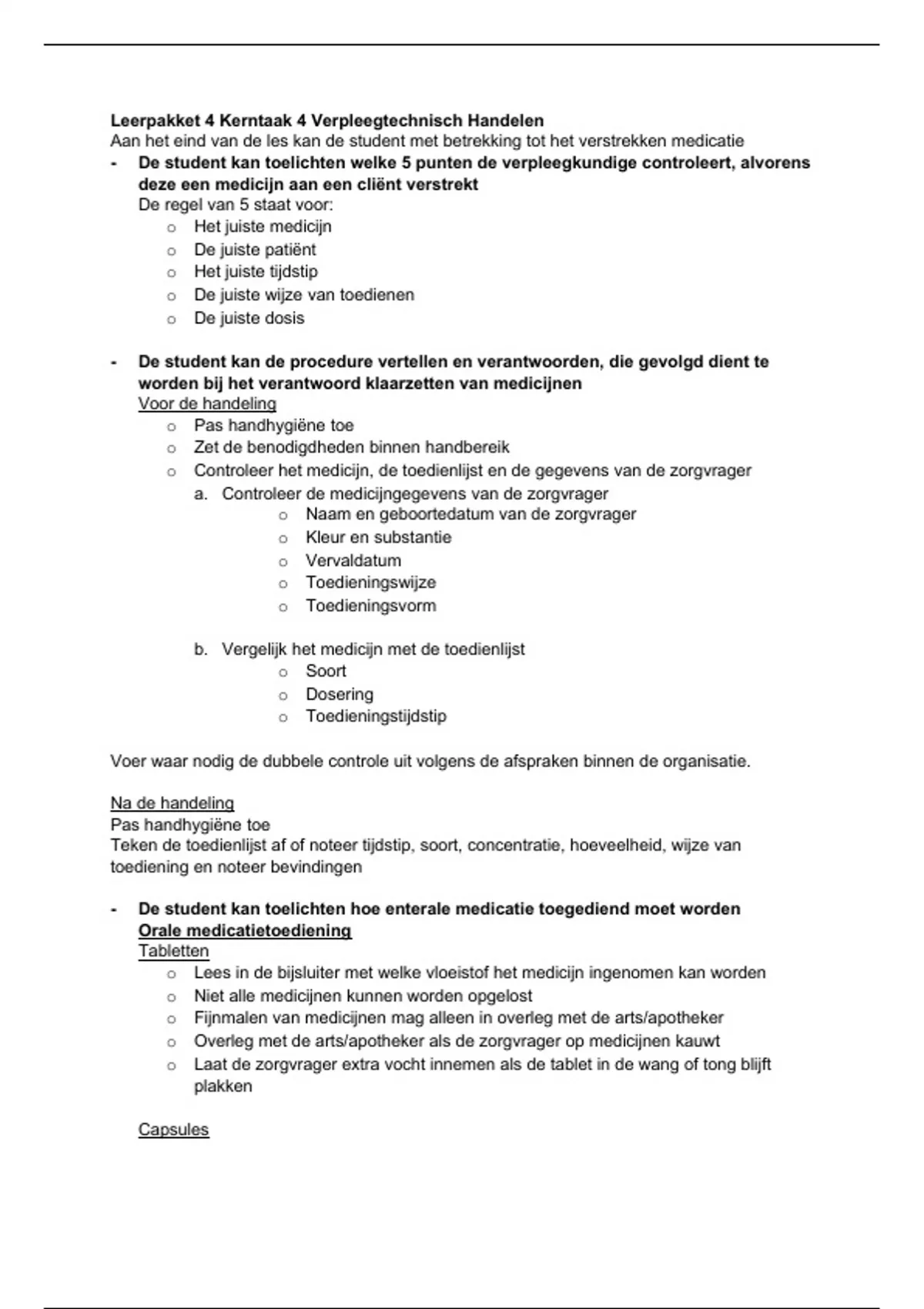 - De student kan de kritieke punten toelichten van het toedienen van medicijnen via