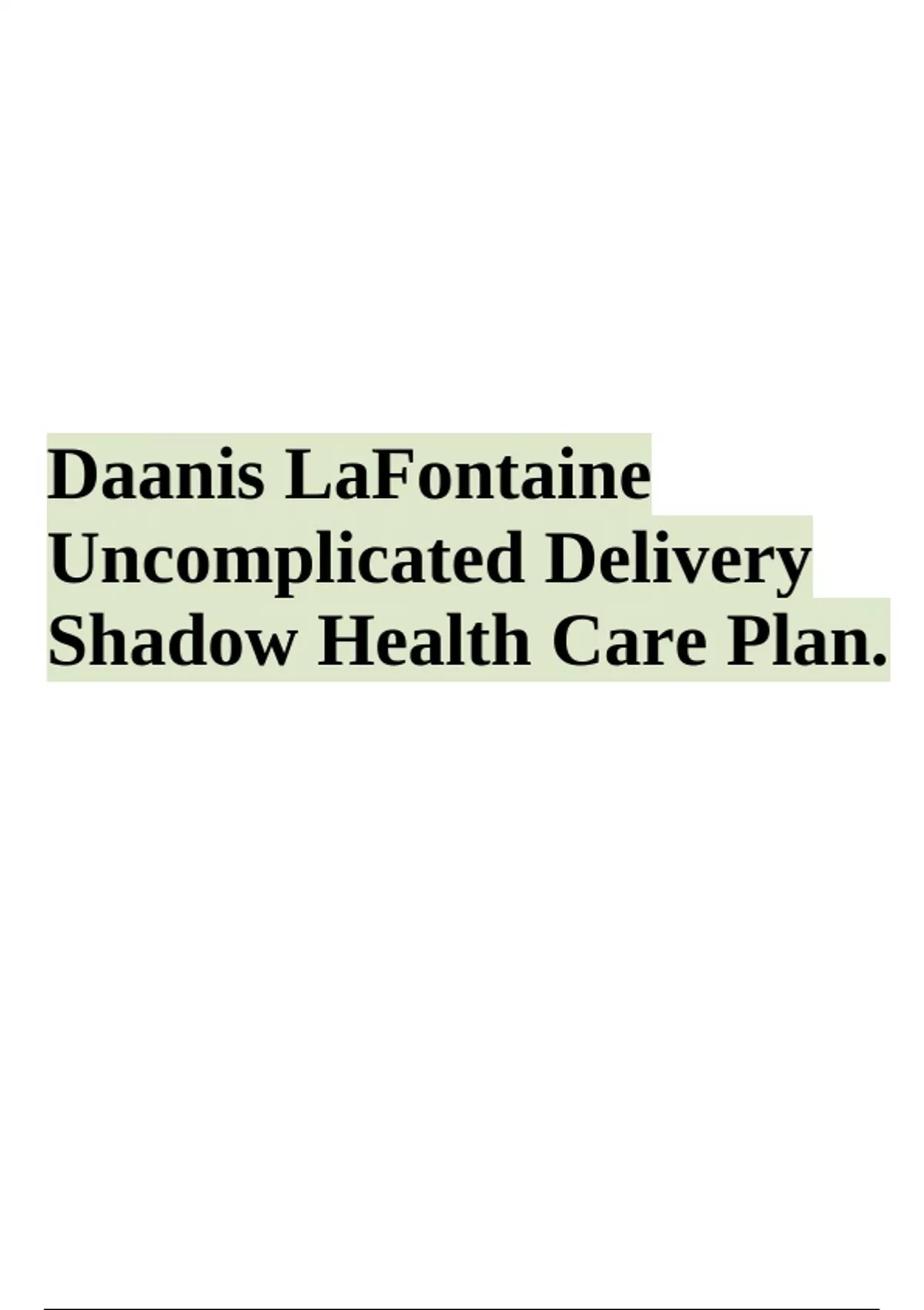 Daanis LaFontaine Uncomplicated Delivery Shadow Health Care Plan