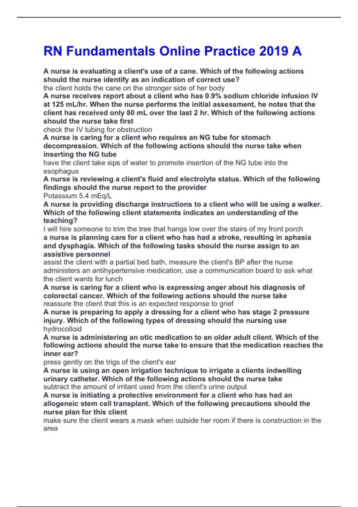 the following actions should the nurse take