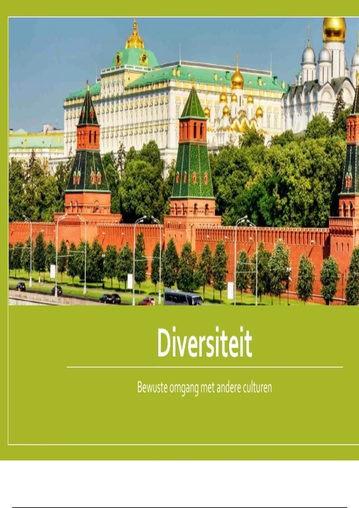 Beste (Albeda) studenten, Ik bied mijn presentatie aan die ik heb gegeven voor het keuzedeel 'Diversiteit'. Deze presentatie gaat over een vergelijking tussen de Russische en Nederlandse cultuur. Presentatie werd met enthousiasme ontvangen en met een goed beoordeeld. Wil jij een idee krijgen hoe ook jij deze opdracht met een goed kan afronden? Download dan nu!