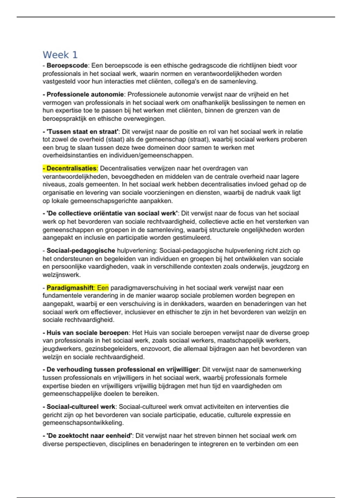 Alle begrippen die op de conceptlijsten stonden staan in dit document en onder elkaar met het verband naar sociaal werk