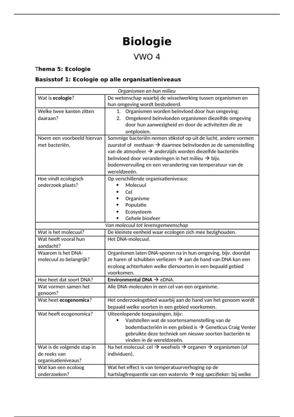 Basisstof 1: Ecologie op alle organisatieniveaus