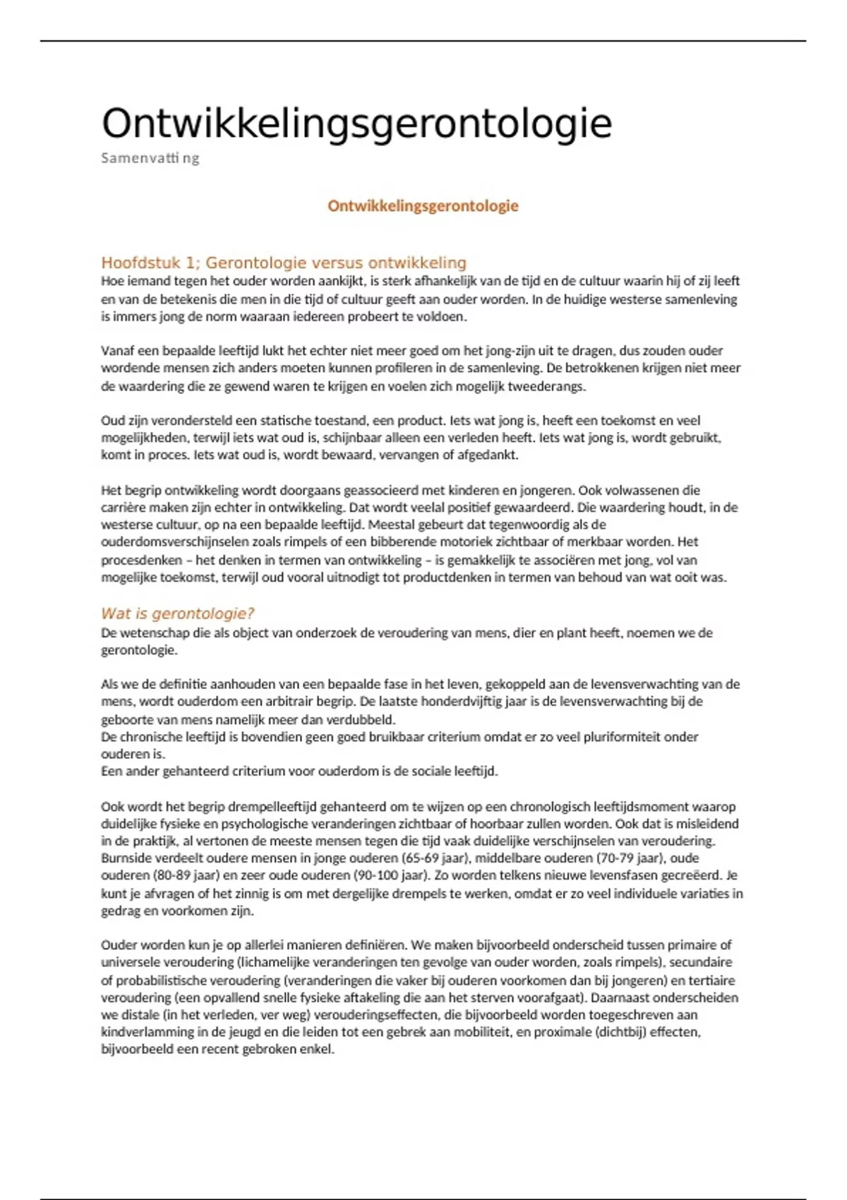 Hoofdstuk 1; Gerontologie versus ontwikkeling
