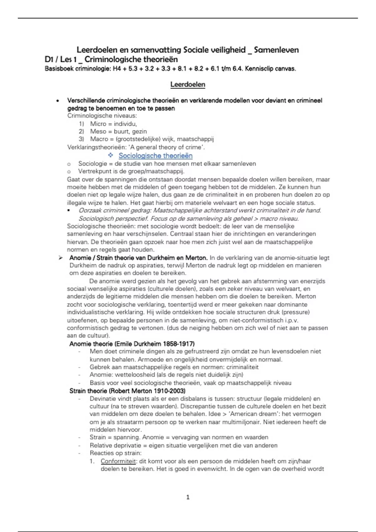 D1 / Les 1 _ Criminologische theorieën