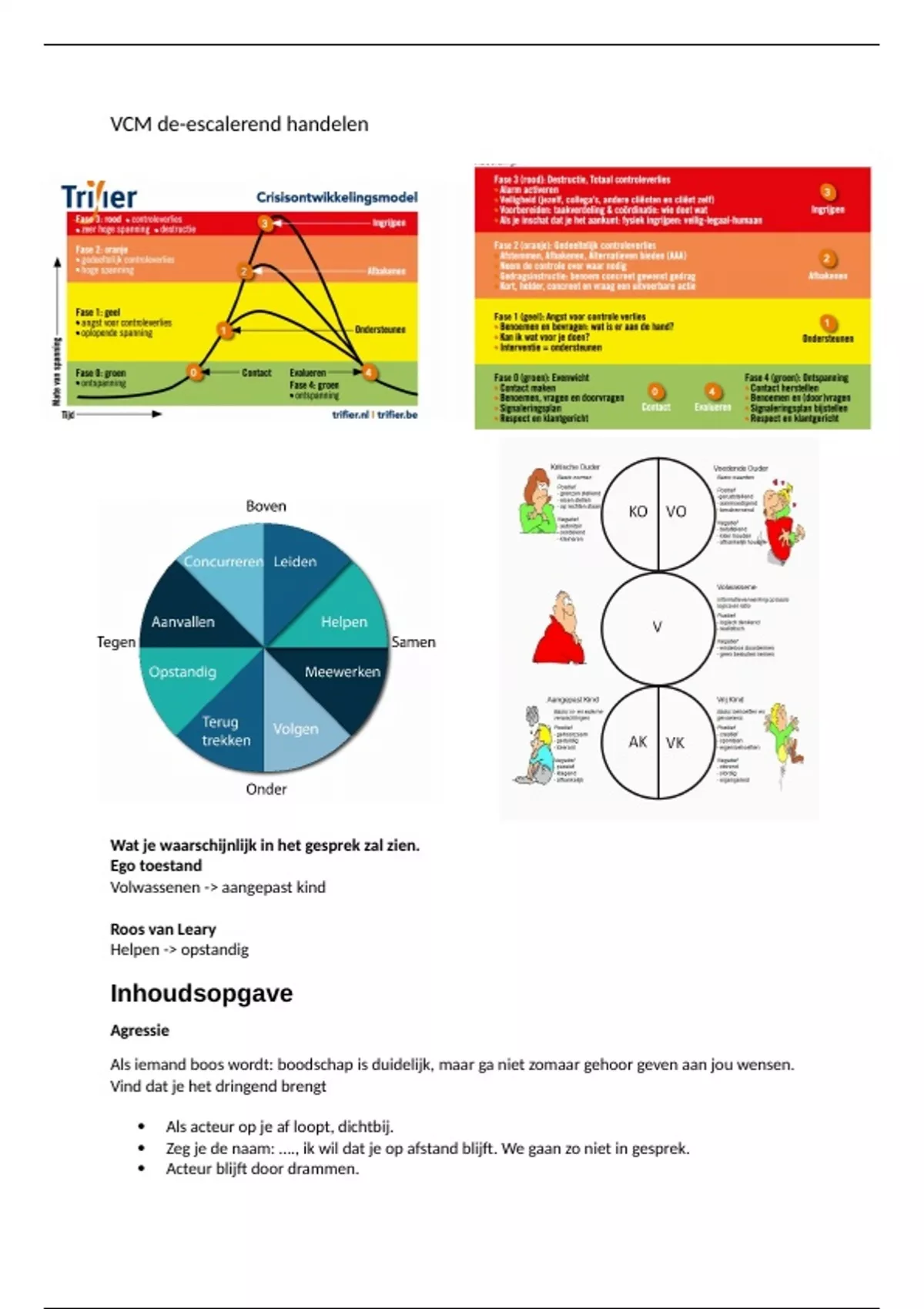 De-escalerend handelen VCM jaar 2. Wellicht ook al erg leerzaam voor jaar 1.Veel voorbeeldzinnen hoe je moet omgaan/ wat je moet doen met agitatie of agressie. Casus: dwangcorvee uitgewerkt. Specifieke voorbeeldzinnen/situaties die ik van te voren heb doorgenomen. Op de toets de-escalerend handelen had ik een 8.