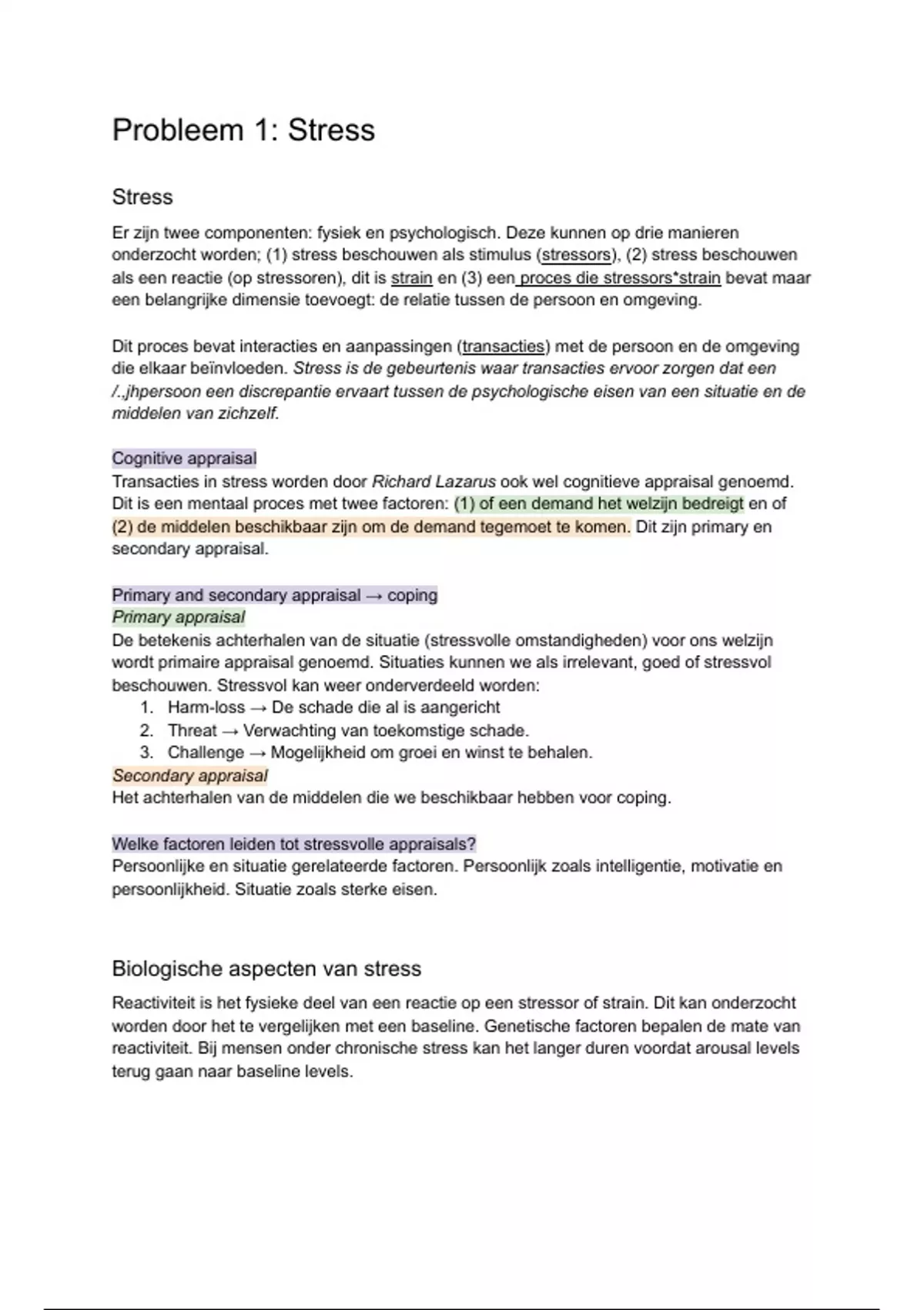 3. Cognitieve appraisal processen spelen een rol in de reactie op stressoren.