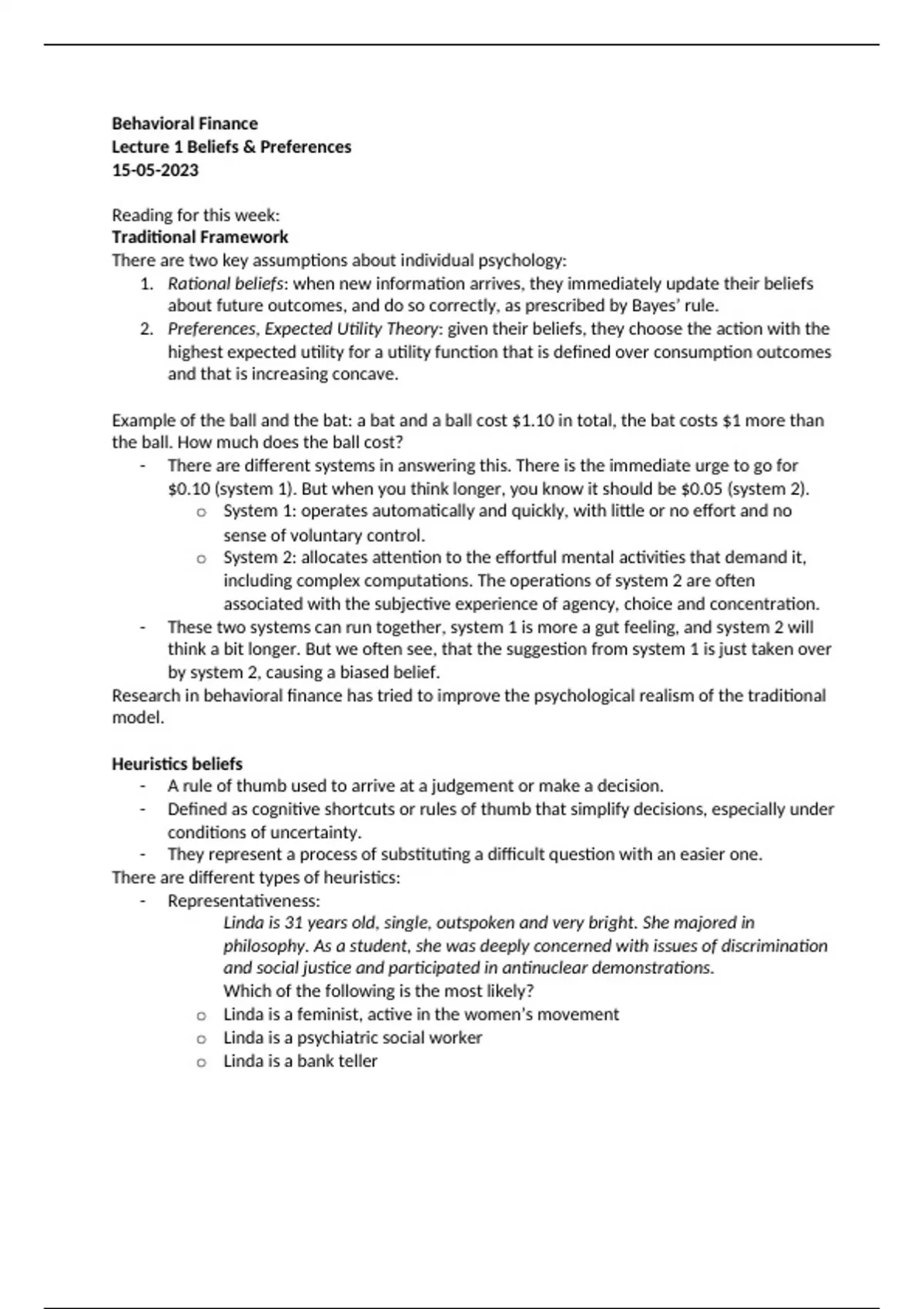 1. Rational beliefs: when new information arrives, they immediately update their beliefs
