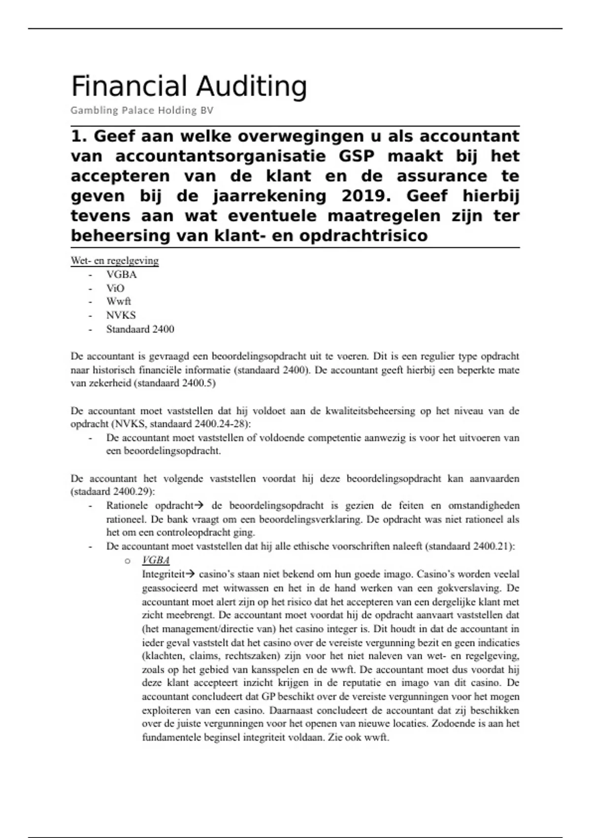 (het management/directie van) het casino integer is. Dit houdt in dat de accountant in