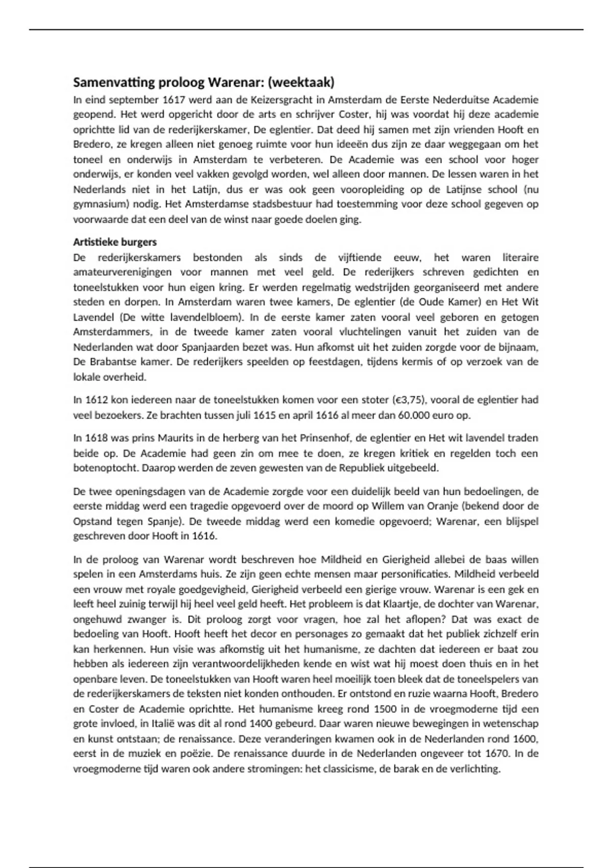 Warenar PC Hooft samenvatting