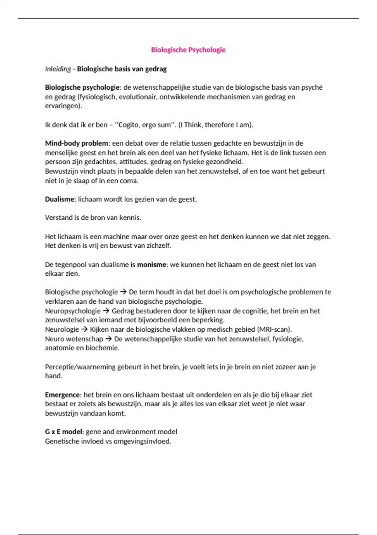verklaren aan de hand van biologische psychologie.