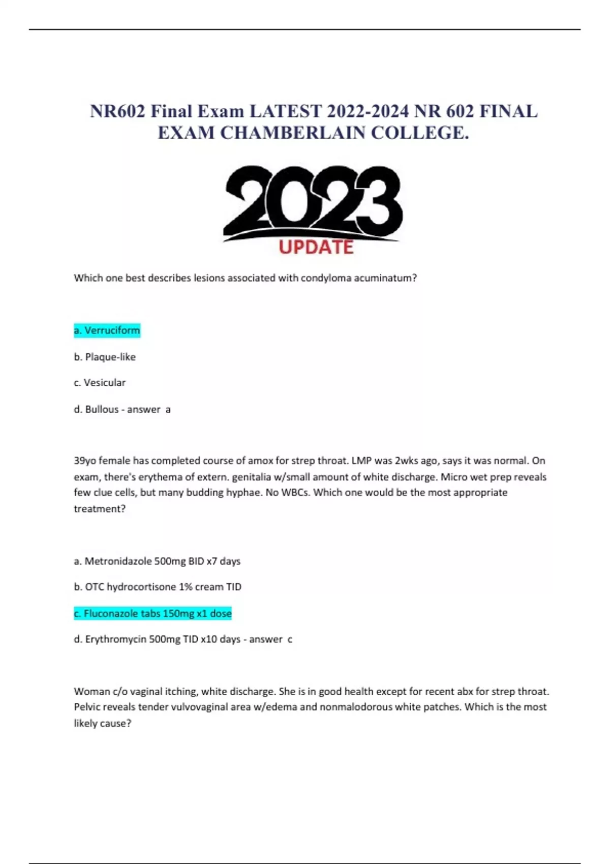 NR602 Final Exam LATEST NR 602 FINAL EXAM CHAMBERLAIN COLLEGE.