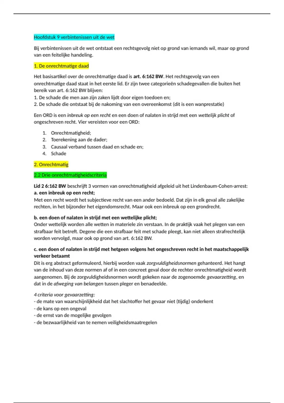 Lid 2 6:162 BW beschrijft 3 vormen van onrechtmatigheid afgeleid uit het Lindenbaum-Cohen-arrest: