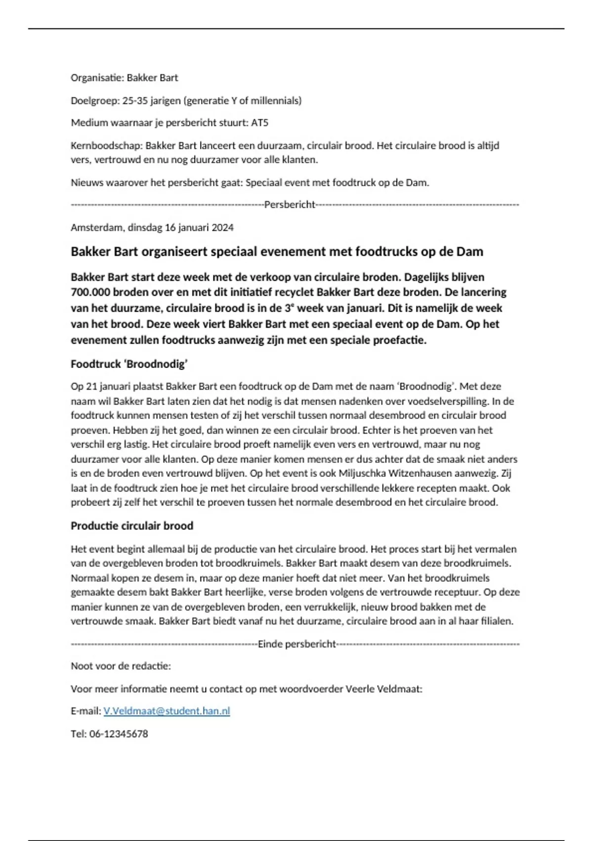 Persbericht Bakker Bart