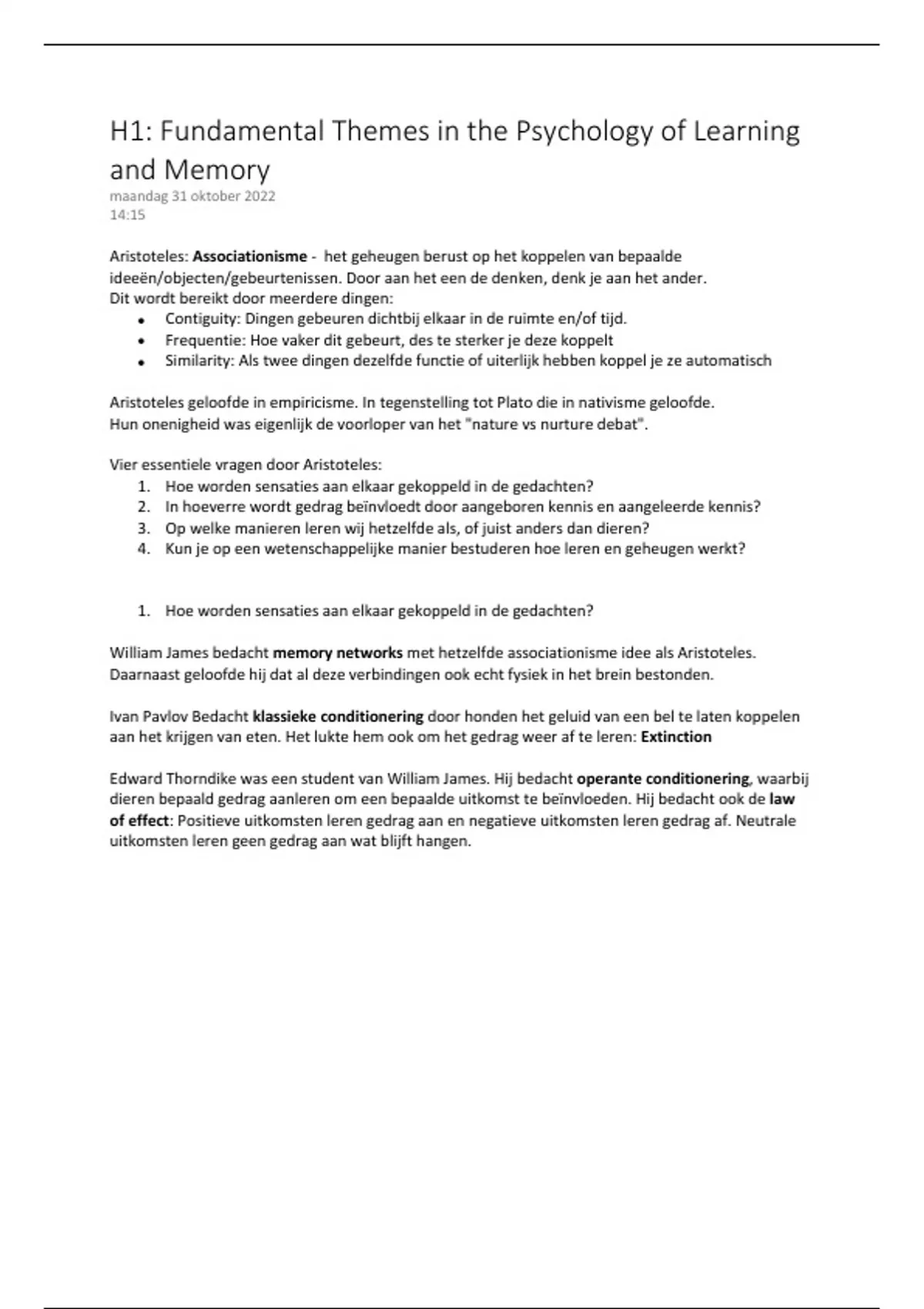 Aristoteles: Associationisme - het geheugen berust op het koppelen van bepaalde