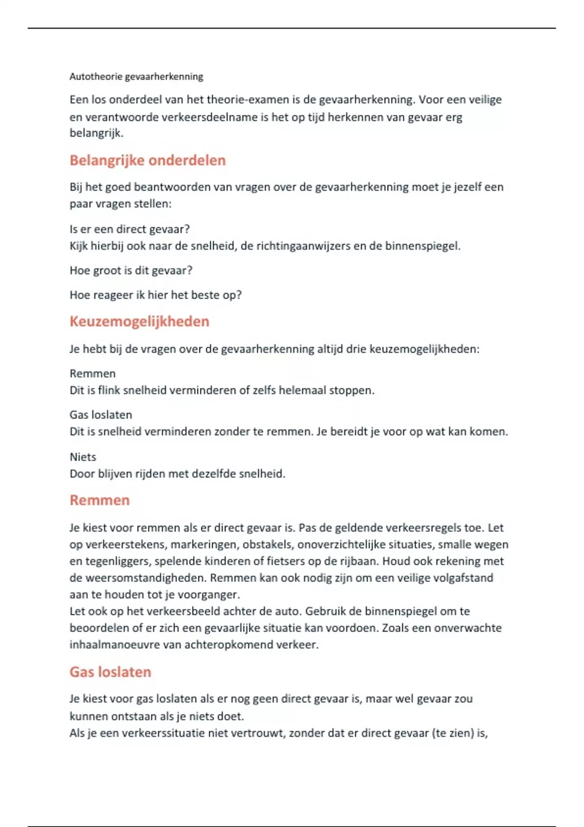 Samenvatting Autotheorie gevaarherkenning rijbewijs B