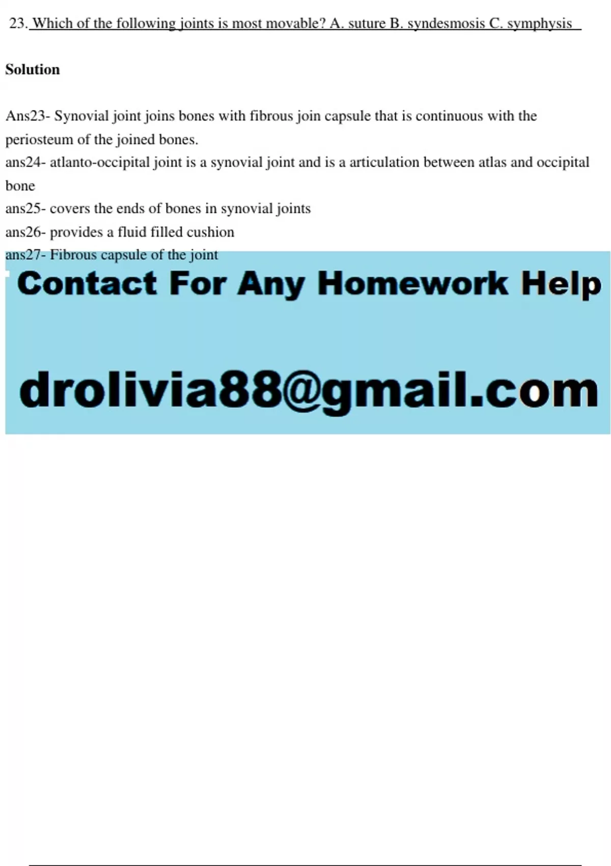 Ans23- Synovial joint joins bones with fibrous join capsule that is continuous with the