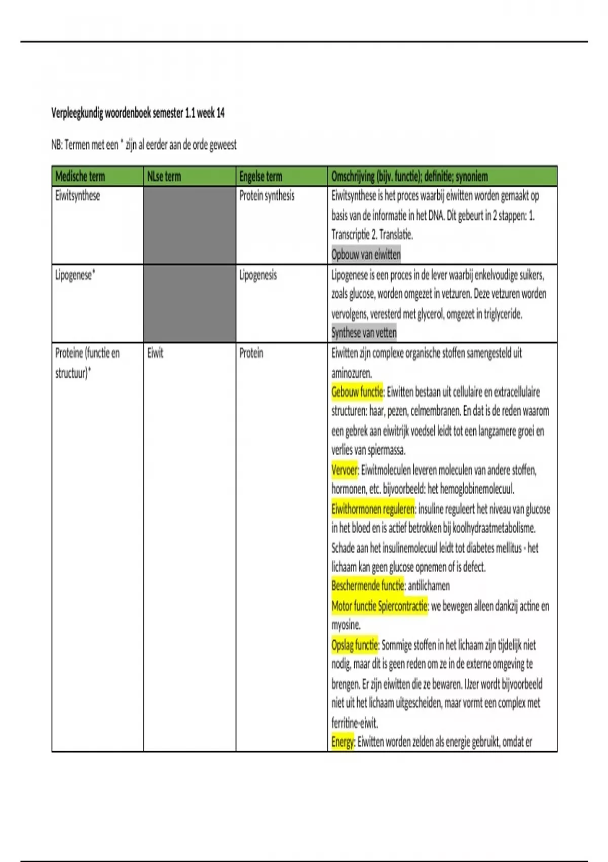 Verpleegkundig woordenboek semester 1.1 week 14