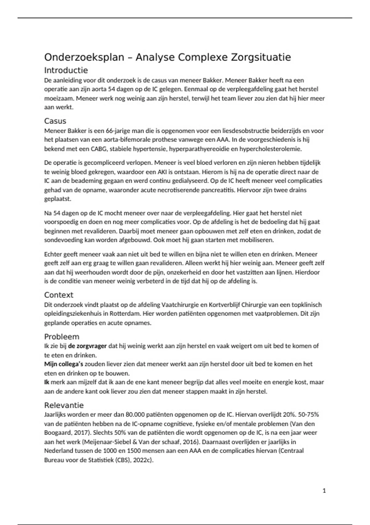 Onderzoeksplan – Analyse Complexe Zorgsituatie