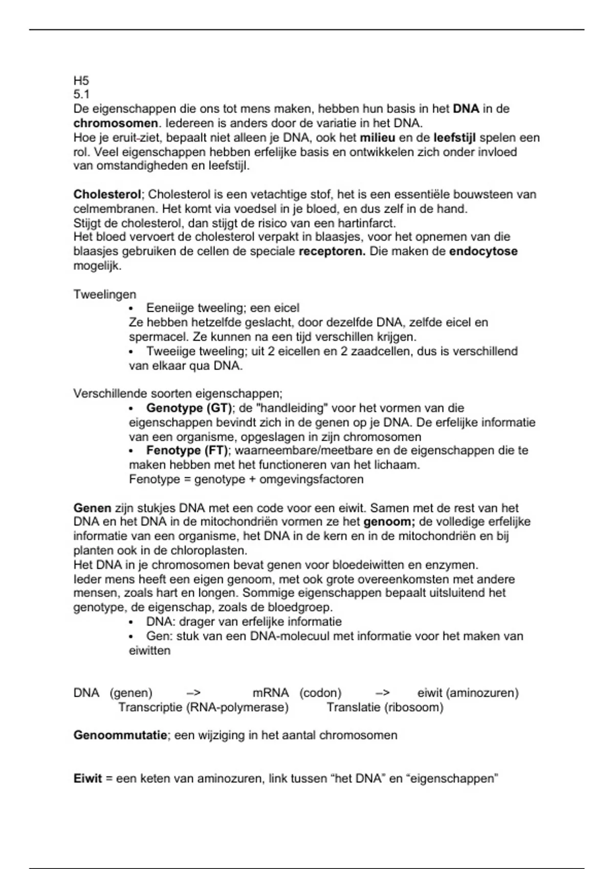 DNA (genen) –> mRNA (codon) –> eiwit (aminozuren)