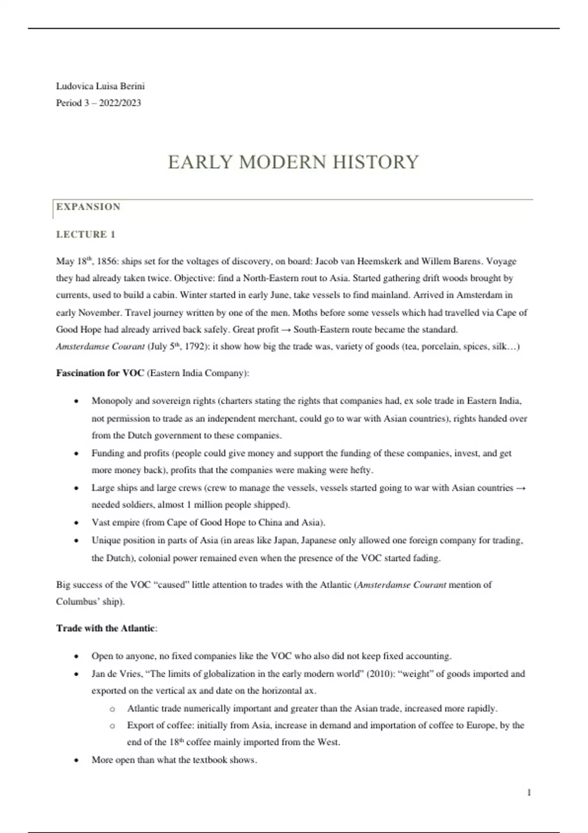 o Export of coffee: initially from Asia, increase in demand and importation of coffee to Europe, by the