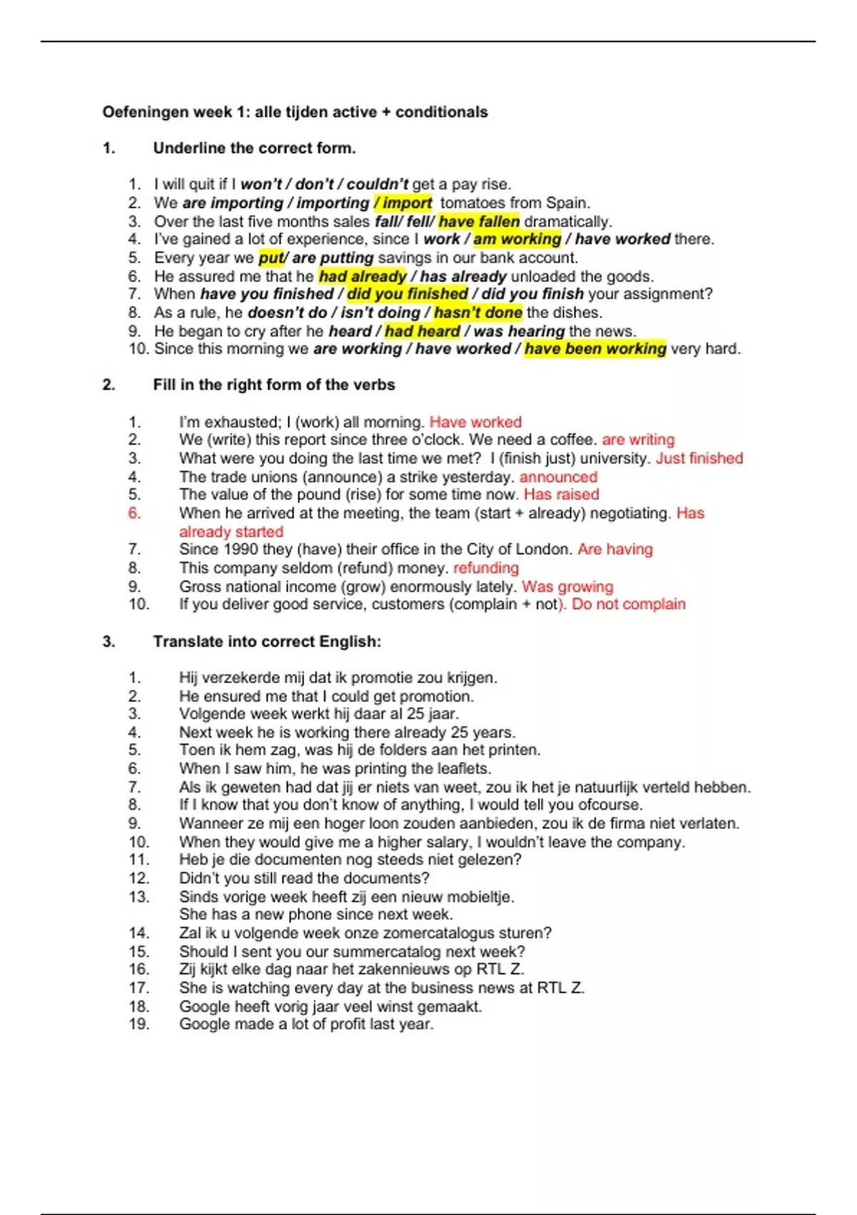 Oefeningen week 1: alle tijden active + conditionals