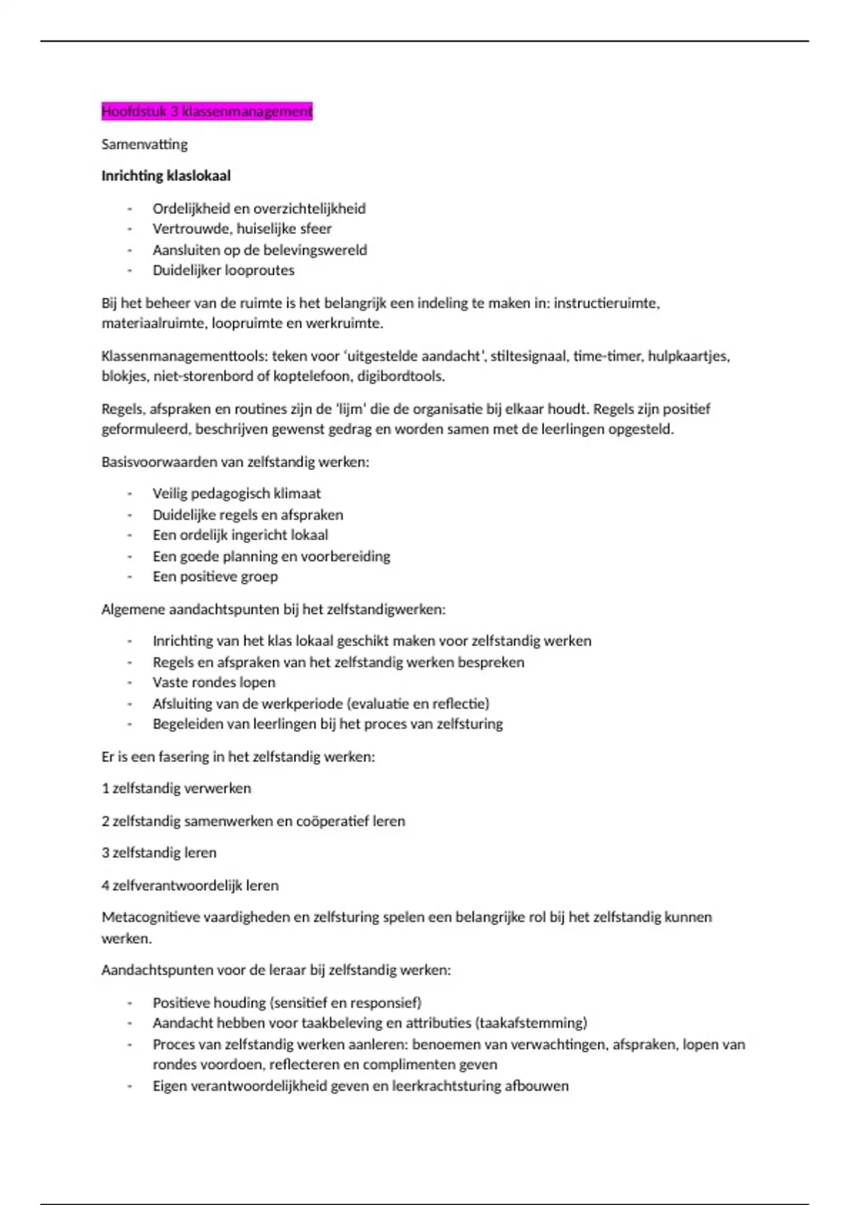 - Inrichting van het klas lokaal geschikt maken voor zelfstandig werken