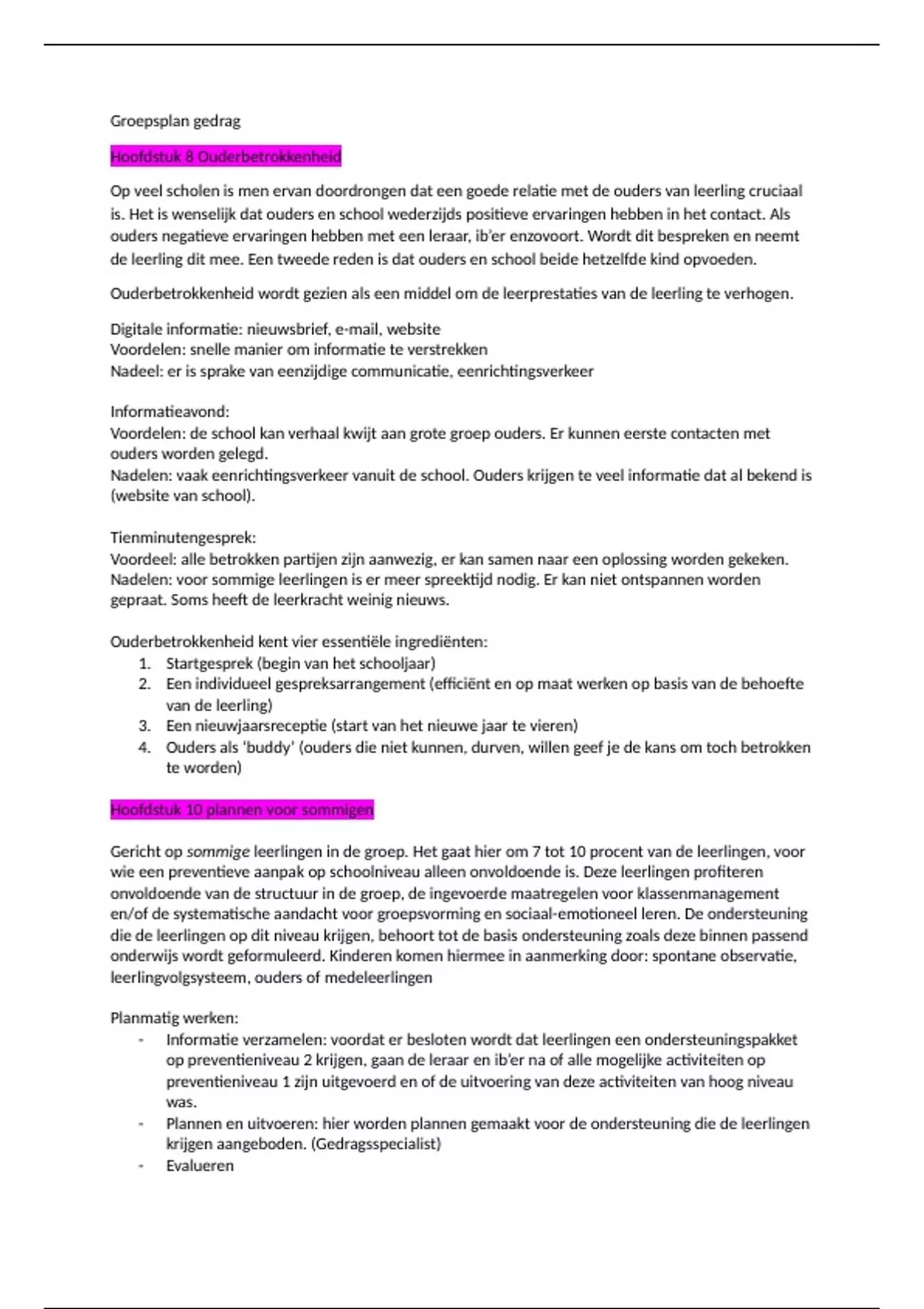 Samenvatting groepsplan gedrag