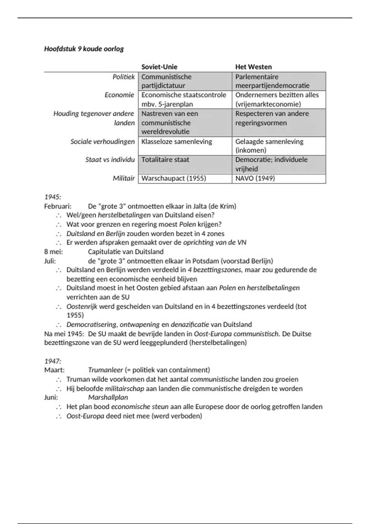 samenvatting historische context Duitsland in Europa + koude oorlog + kenmerkende aspecten