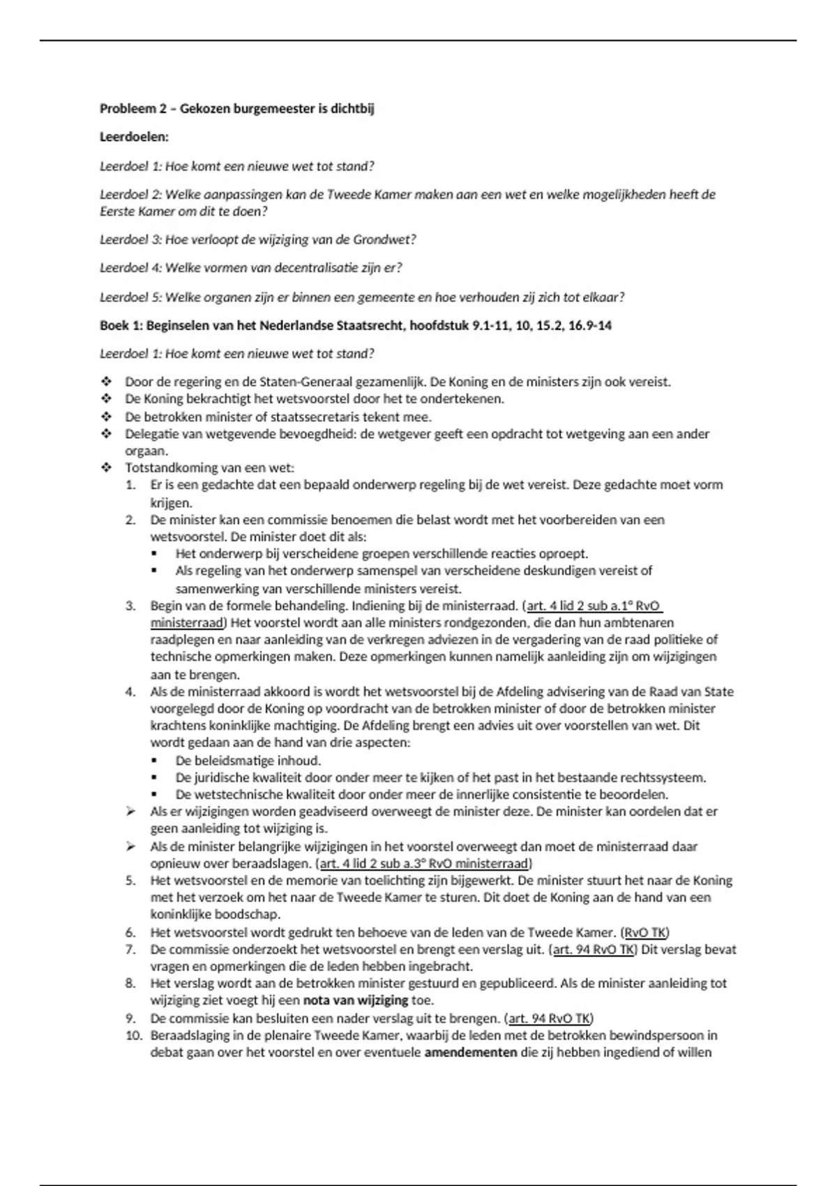 Boek 1: Beginselen van het Nederlandse Staatsrecht, hoofdstuk 9.1-11, 10, 15.2, 16.9-14