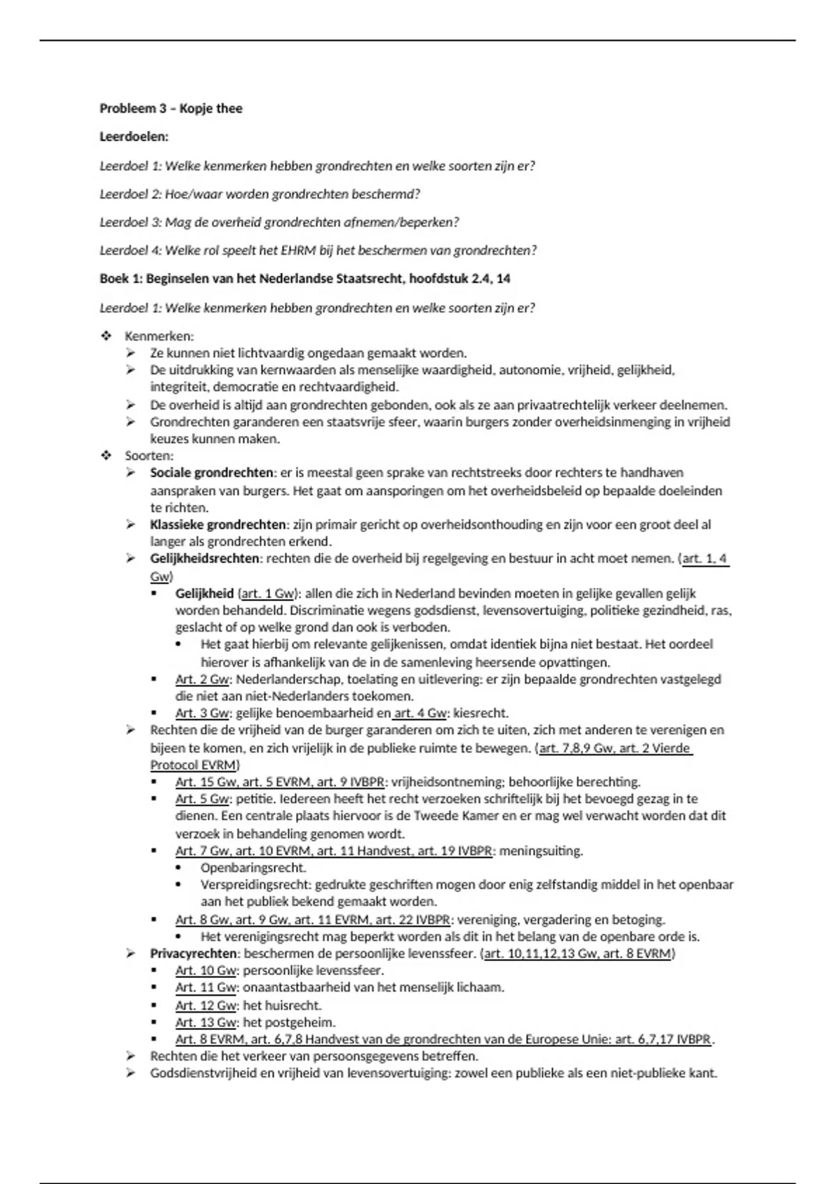 Leerdoel 1: Welke kenmerken hebben grondrechten en welke soorten zijn er?