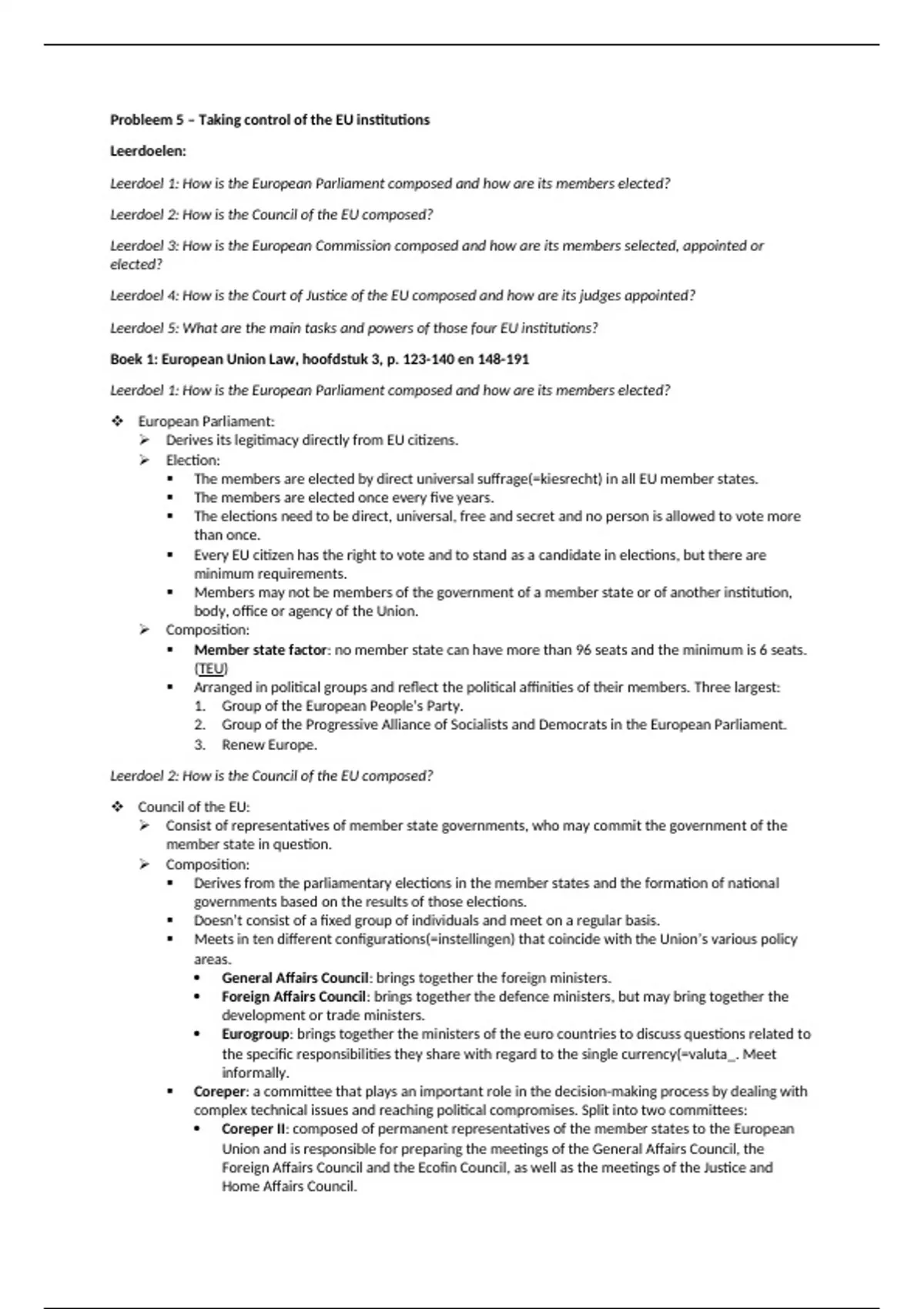 Boek 1: European Union Law, hoofdstuk 3, p. 123-140 en 148-191