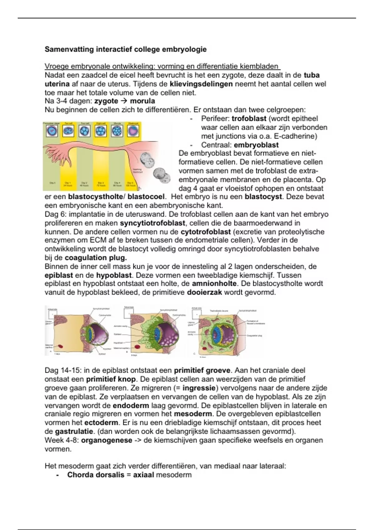 Samenvatting interactief college embryologie