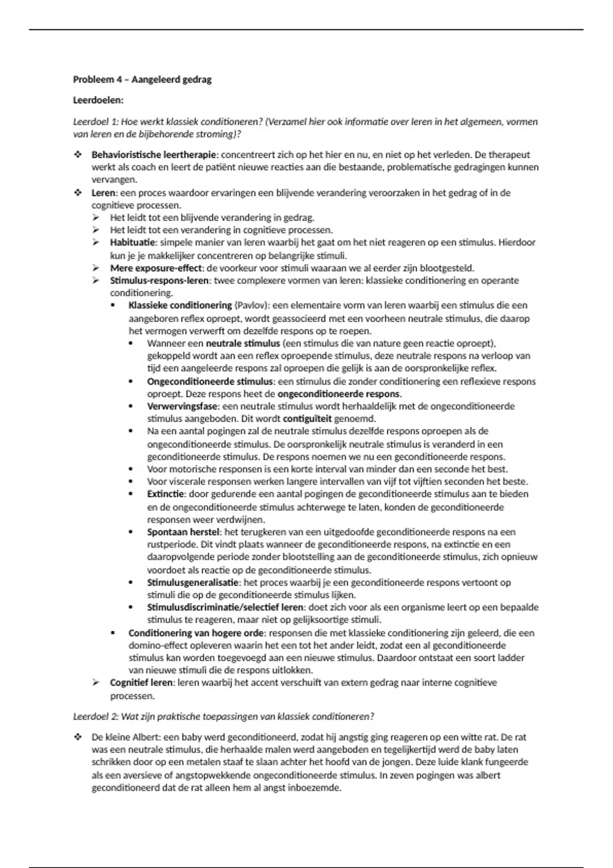  De kleine Albert: een baby werd geconditioneerd, zodat hij angstig ging reageren op een witte rat. De rat