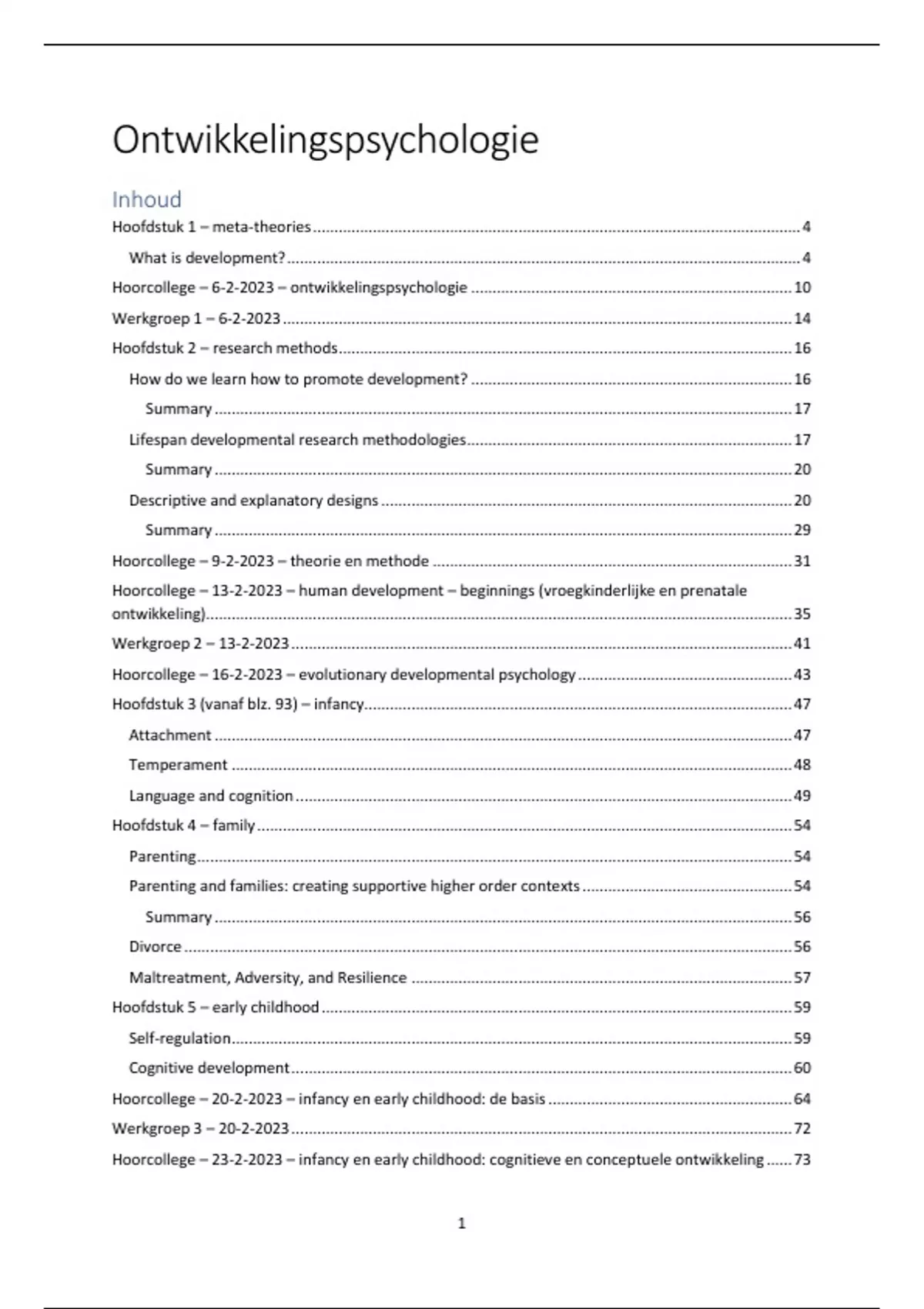 Hoorcollege – 23-2-2023 – infancy en early childhood: cognitieve en conceptuele ontwikkeling ...... 73