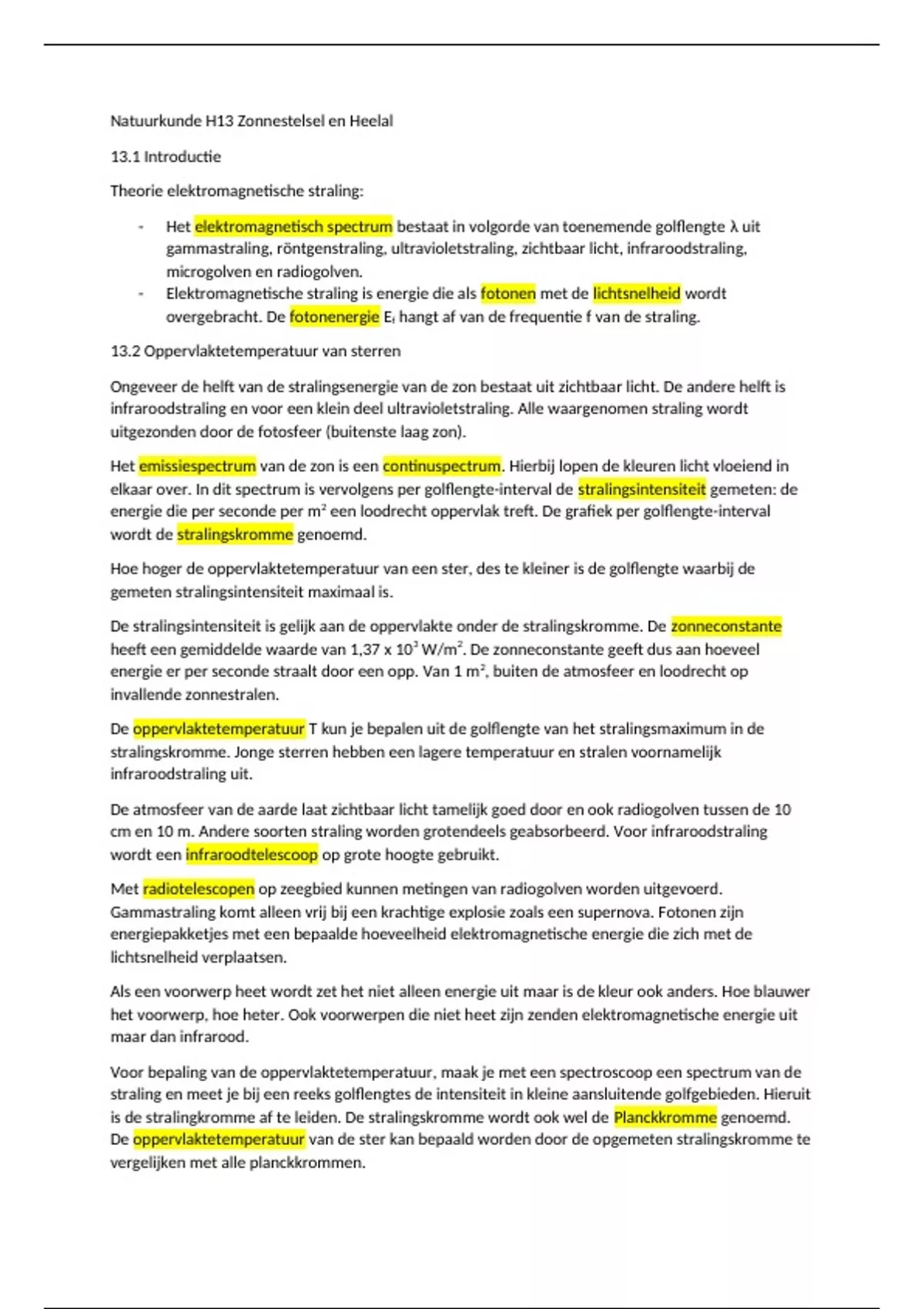Dit is een samenvatting van hoofdstuk 13 Zonnestelsel en Heelal van Newton uit VWO 6.