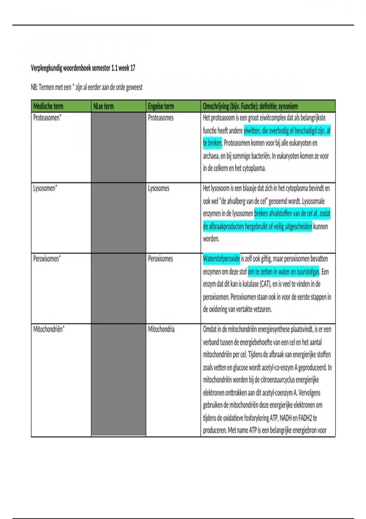 Verpleegkundig woordenboek semester 1.1 week 17 belangrijk voor module MB week 17 t/m 20