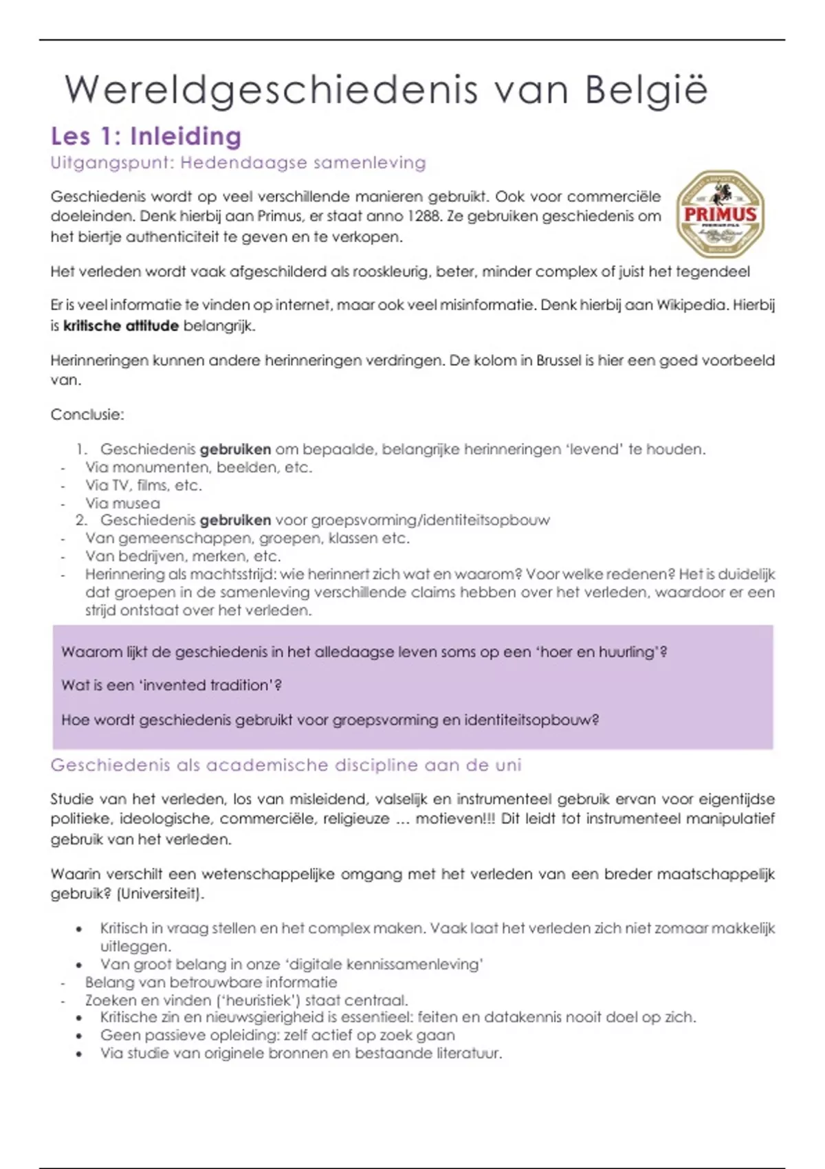 Een samenvatting van het vak Wereldgeschiedenis van België (academiejaar ). Ik heb een combinatie gemaakt van de colleges en het bijbehorende cursusmateriaal.