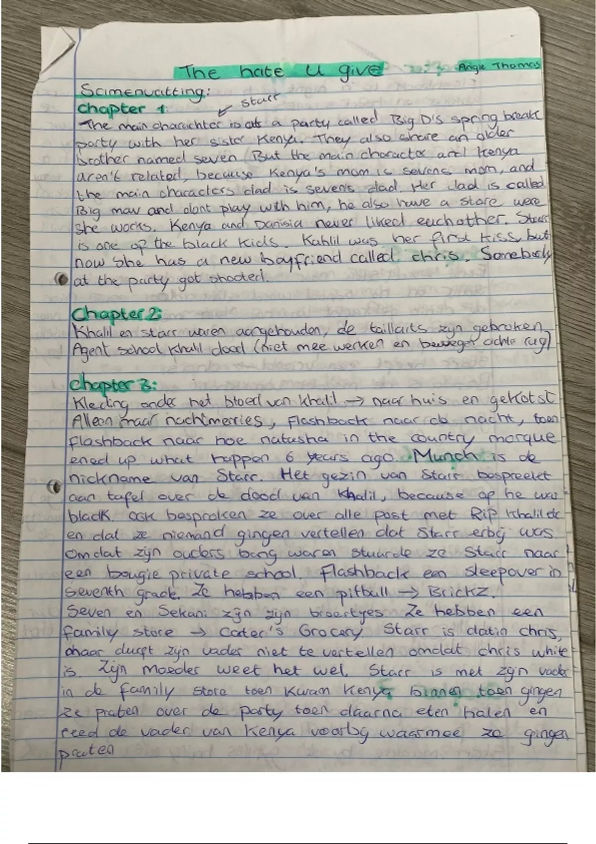 Samenvatting van het boek per hoofdstuk wat het belangrijkste stuk was in dat hoofdstuk in het engels en nederlands door elkaar