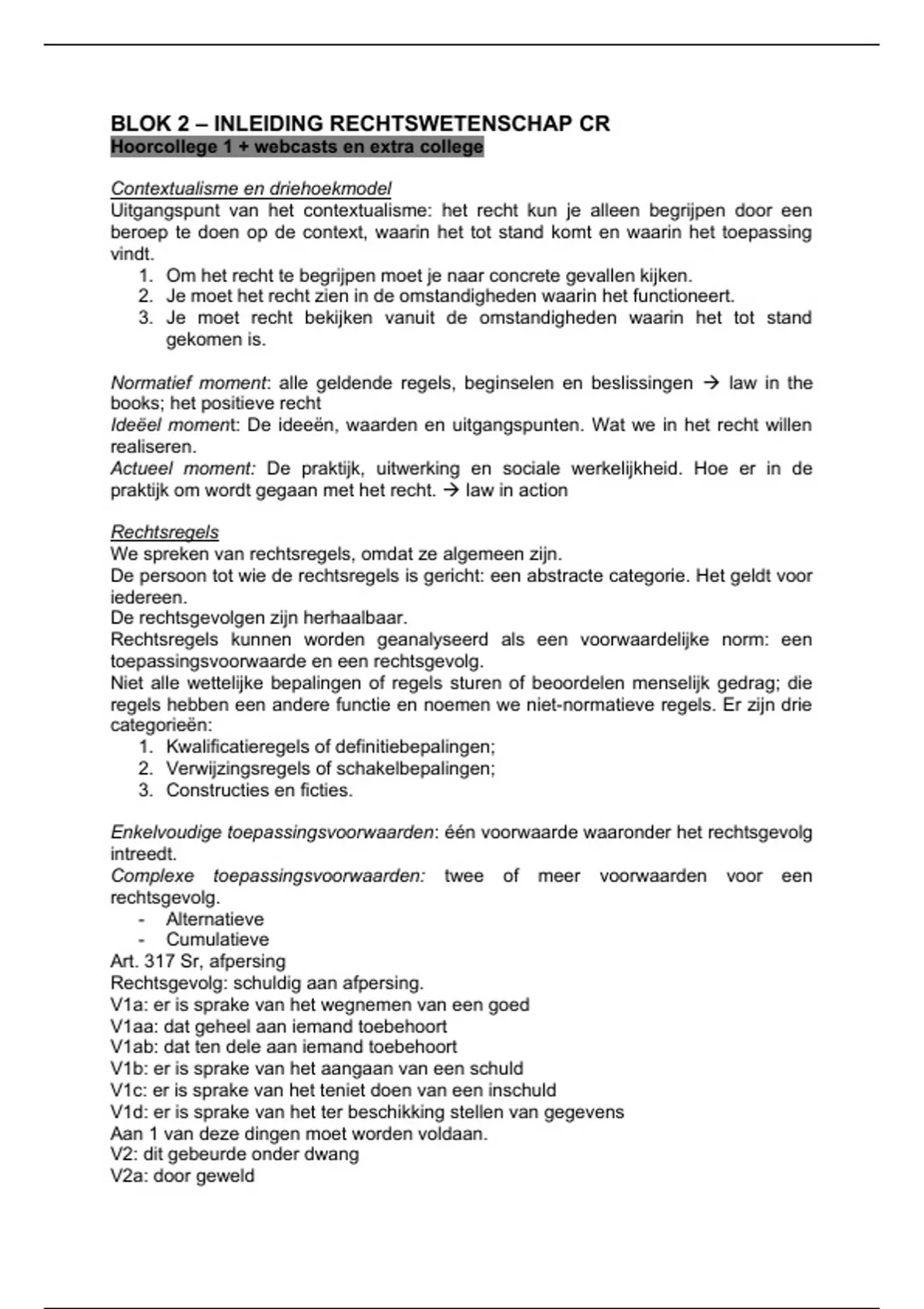 BLOK 2 – INLEIDING RECHTSWETENSCHAP CR