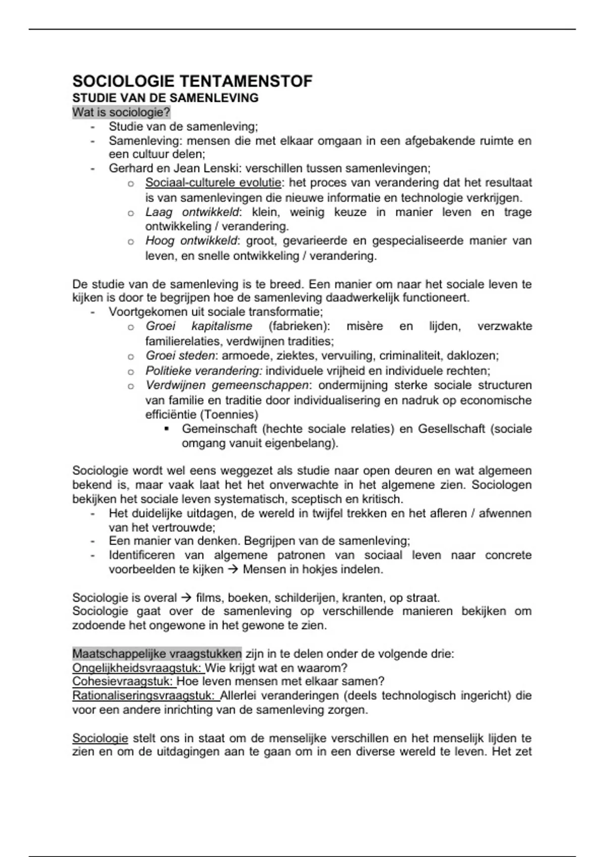SOCIOLOGIE TENTAMENSTOF