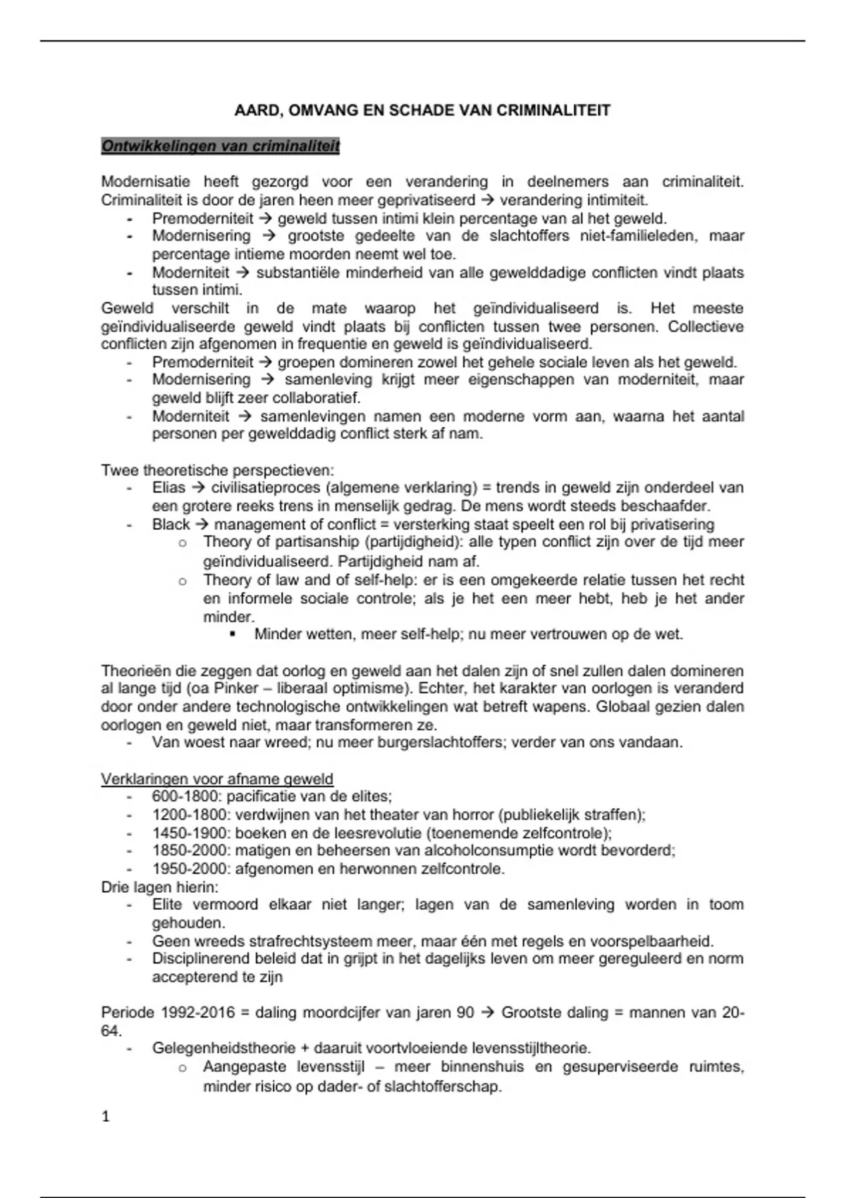 - Elias civilisatieproces (algemene verklaring) = trends in geweld zijn onderdeel van