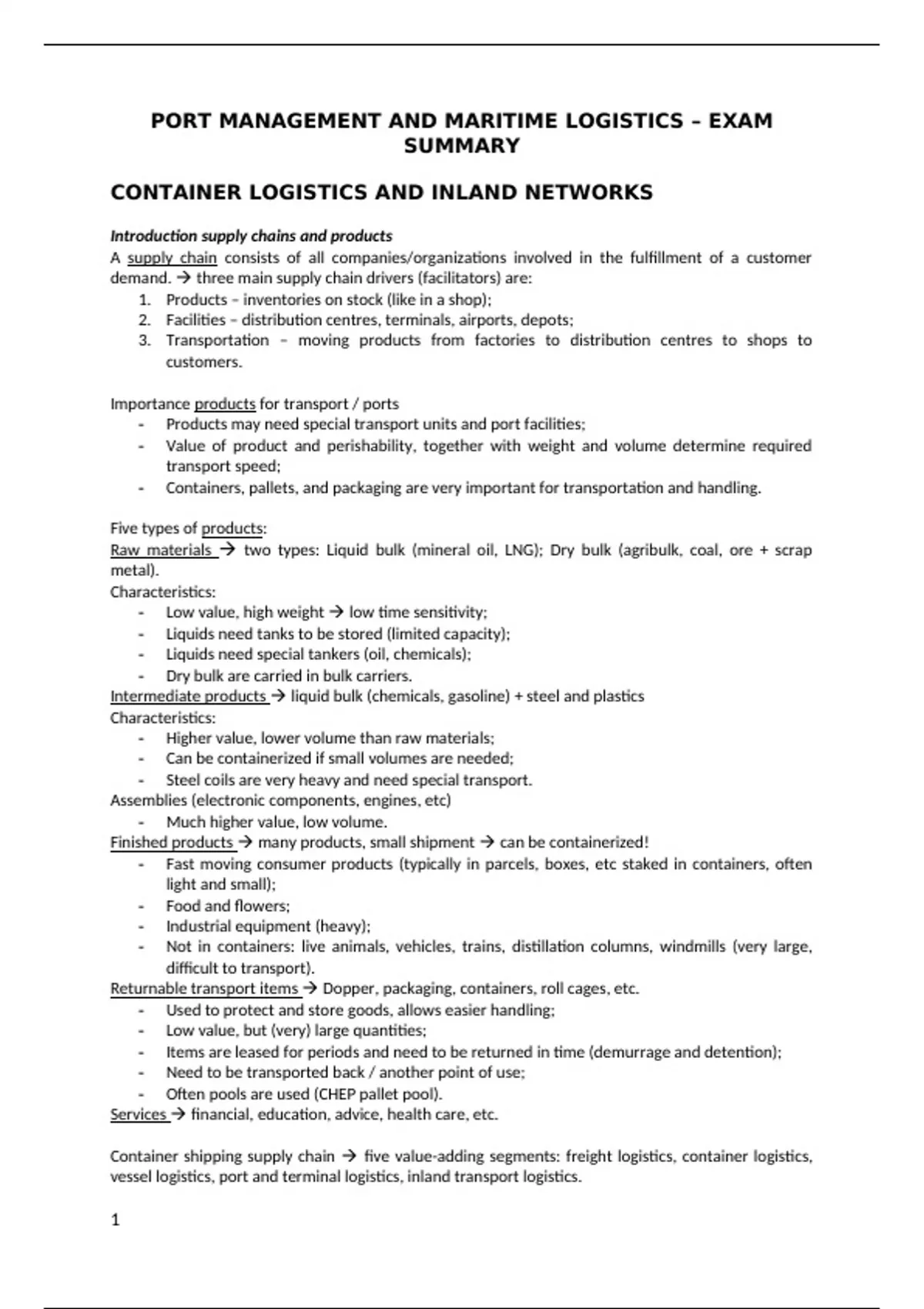PORT MANAGEMENT AND MARITIME LOGISTICS – EXAM