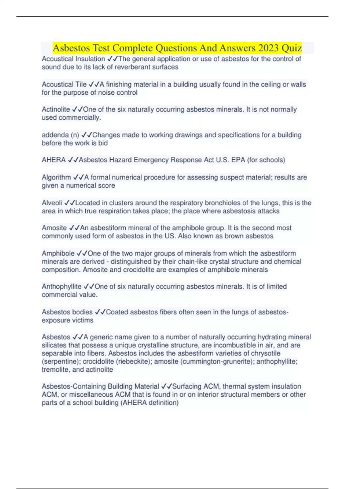 Asbestos, Radon, And Lead Exam 2 With Latest Solutions Graded A+ 2023