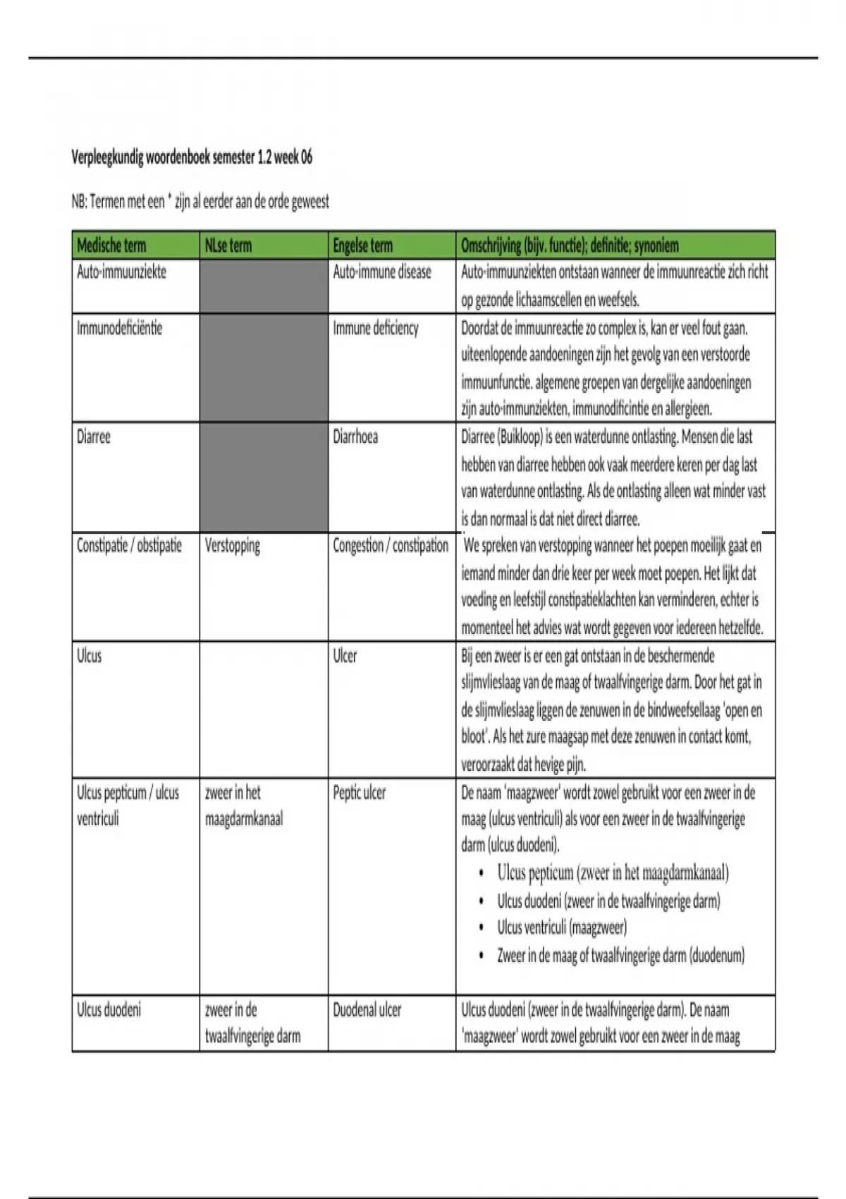 Verpleegkundig woordenboek semester 1.2 week 06