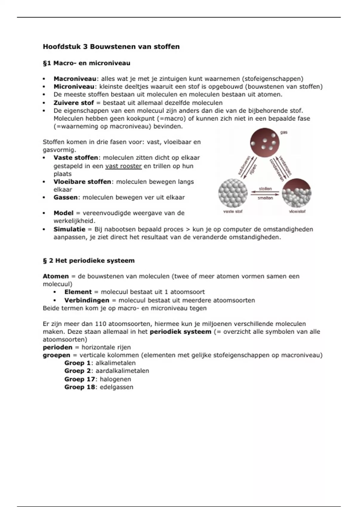 Macroniveau: alles wat je met je zintuigen kunt waarnemen (stofeigenschappen)