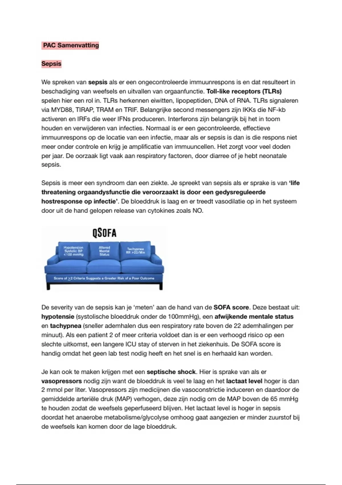 De severity van de sepsis kan je ‘meten’ aan de hand van de SOFA score. Deze bestaat uit: