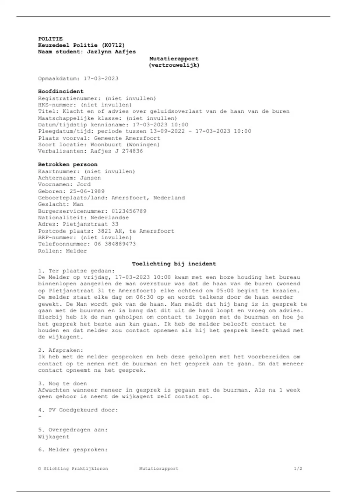 © Stichting Praktijkleren Mutatierapport 1/2